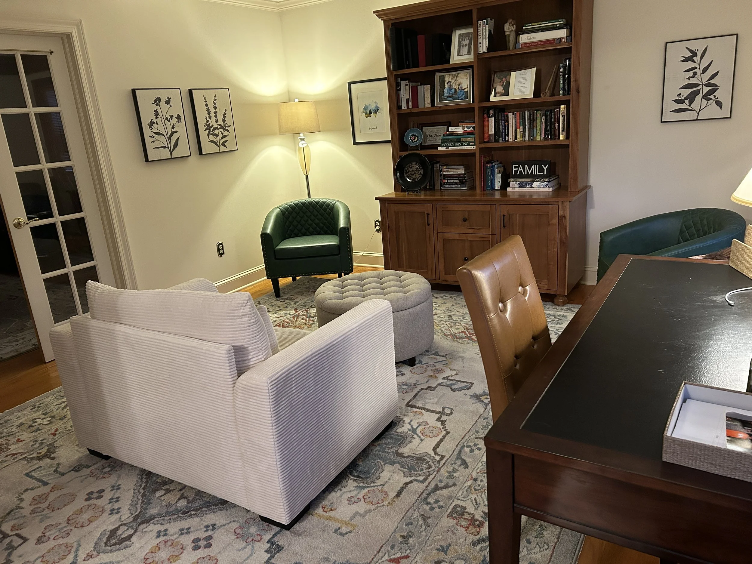 A living space decluttered and given purpose and intention. An ignored room becomes a cozy gathering area for the family.